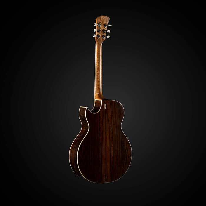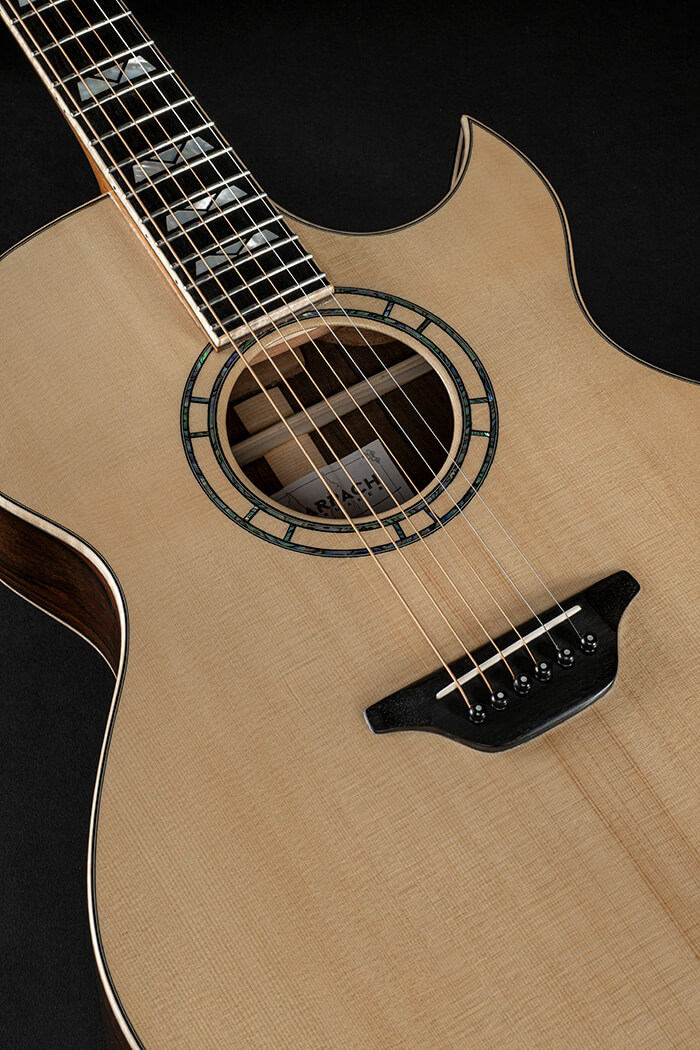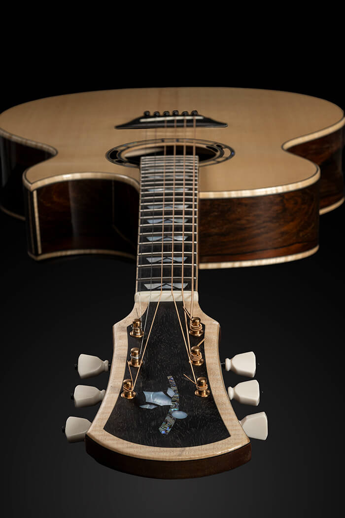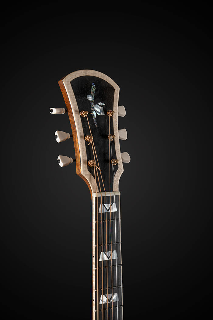 Every note on the fretboard is even across the entire range, from lows to highs, with the bell-like sustain and harmonics that are a distinguishing characteristic of all Scharpach guitars and seem to go on forever.